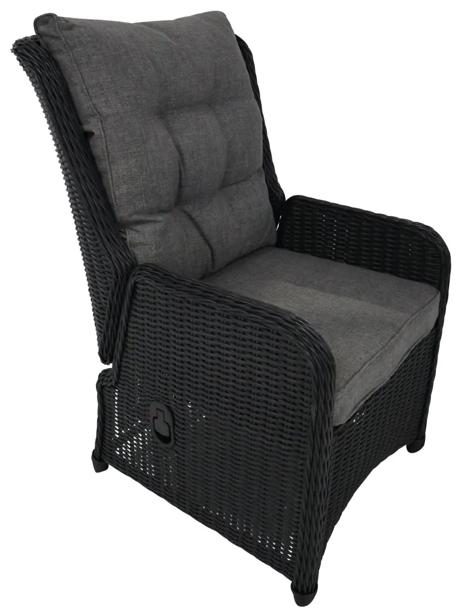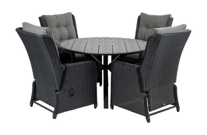 Rundes Gartenset 4 Personen | Dublin verstellbare Gartenstühle (Schwarz) | Limasol Polywood Gartentisch ø 120 cm (Grau)