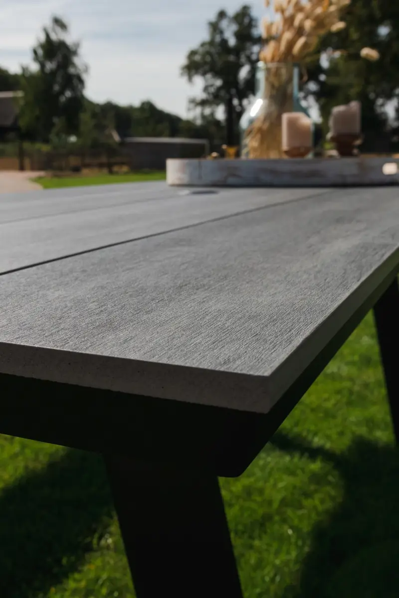 Der runde Gartentisch, der zu diesem Set gehört, hat eine Platte aus Polywood mit einem Kreuzfuß aus Aluminium. Durch die Verwendung dieser Materialien ist der Tisch leicht zu bewegen und pflegeleicht. Wir empfehlen, den Tisch bei längerer Nutzungspause oder schlechten Witterungsverhältnissen abzudecken, um seine Lebensdauer zu verlängern. Zu diesem Zweck bieten wir passende Schutzhüllen an.