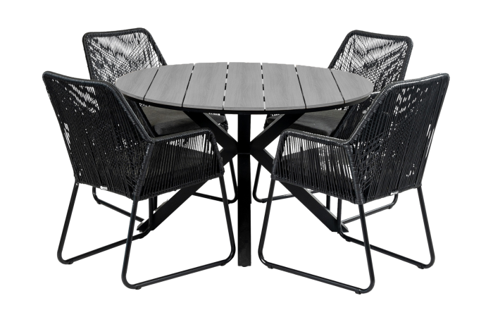 5-teiliges Gartenset | 4 Mona Gartenstühle | Limasol Gartentisch | ø 120 cm