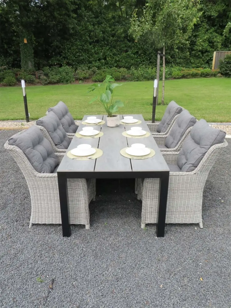 Gartenset für 4 Personen | Dublin Gartenstühle (Mystic Grau) | Limasol Polywood Gartentisch 160 cm/180 cm (Wood)