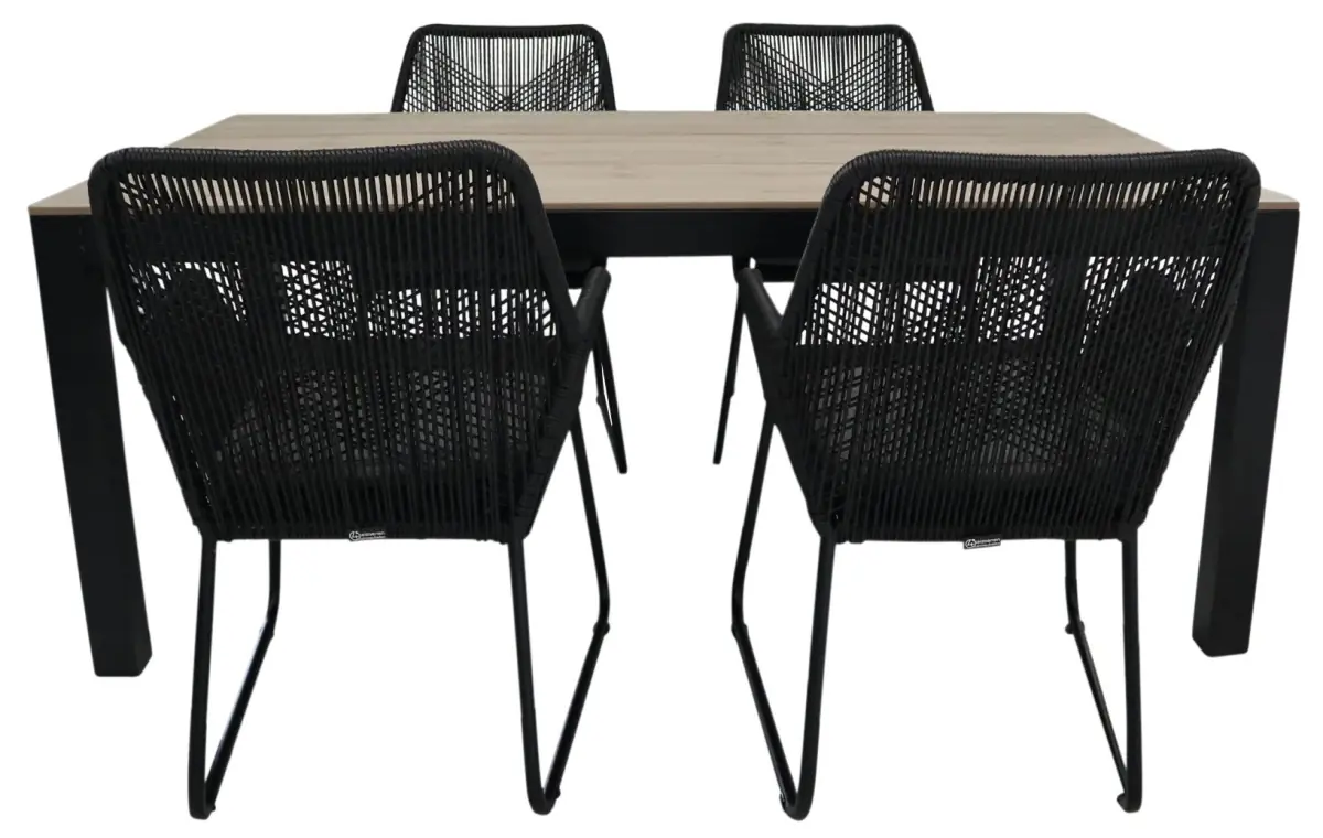 Gartenset für 4 Personen | Isabel Gartenstühle (Sand) | Limasol Polywood Gartentisch 180 x 100 cm (Grau)