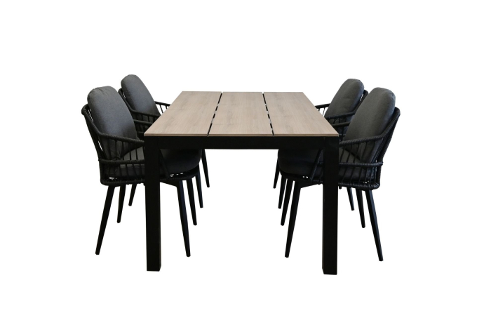 Gartenset für 4 Personen | Isabel Gartenstühle (Schwarz) | Limasol Polywood Gartentisch 160 x 100 cm (Wood)