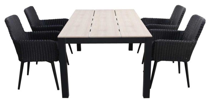 Gartenset für 4 Personen | Pisa Gartenstühle (Schwarz) | Limasol Polywood Gartentisch 160 cm (Wood)