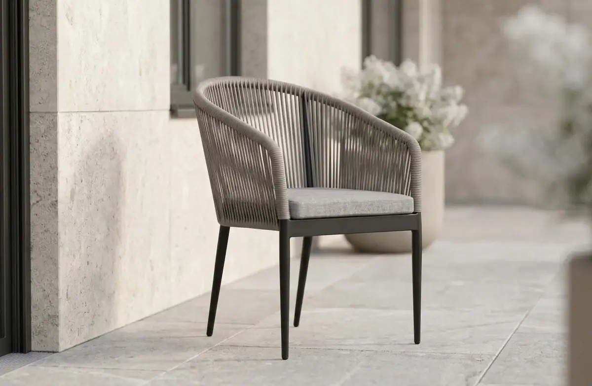 Entdecken Sie den stapelbaren Gartenstuhl Sluis, eine moderne Ergänzung für Ihren Außenbereich in der modernen Farbe Schwarz. Der Aluminiumrahmen in Schwarz harmoniert perfekt mit dem sandfarbenen Seil, das dem Stuhl einen luxuriösen Look verleiht. Dieser Gartenstuhl ist mit einem starken und flexiblen Seil bespannt, das nicht nur witterungsbeständig ist, sondern sich auch der natürlichen Form Ihres Rückens anpasst und so für zusätzlichen Komfort sorgt. Die geflochtene Struktur des Sluis Gartenstuhls macht ihn zu einer stilvollen Wahl für jeden Garten oder jede Terrasse. Das bequeme Sitzkissen in Off-Sand sorgt für zusätzliche Weichheit, so dass Sie Ihren Außenbereich stundenlang genießen können. Kombinieren Sie den Sluis-Gartenstuhl mit unseren Tecon Teak-Gartentischen für einen warmen und einladenden Look auf Ihrer Terrasse.