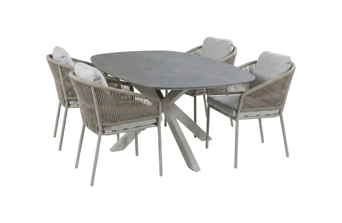 5-teiliges Gartenmöbel-Set | 4 Brindsi Gartenstühle (Camel) | Gartentisch Barletta 180x115 cm (Desert Pearl/Camel)