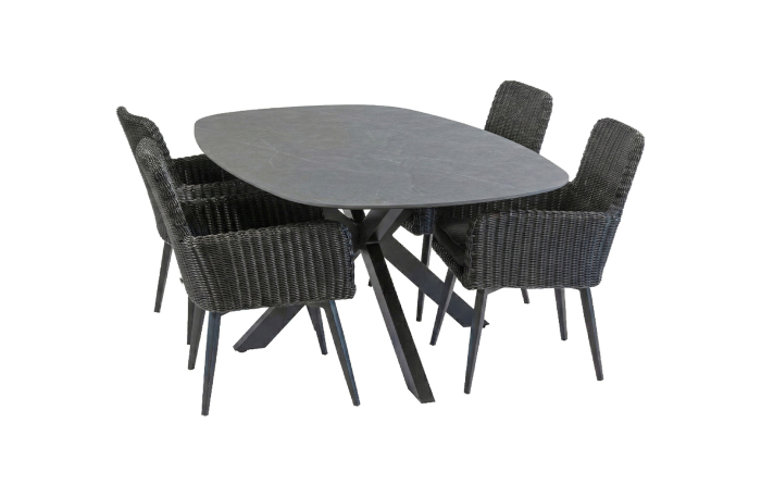 5-teiliges Gartenmöbel-Set | 4 Pisa Gartenstühle (Black) | Gartentisch Barletta 180x115 cm (Black/Desert Pearl)