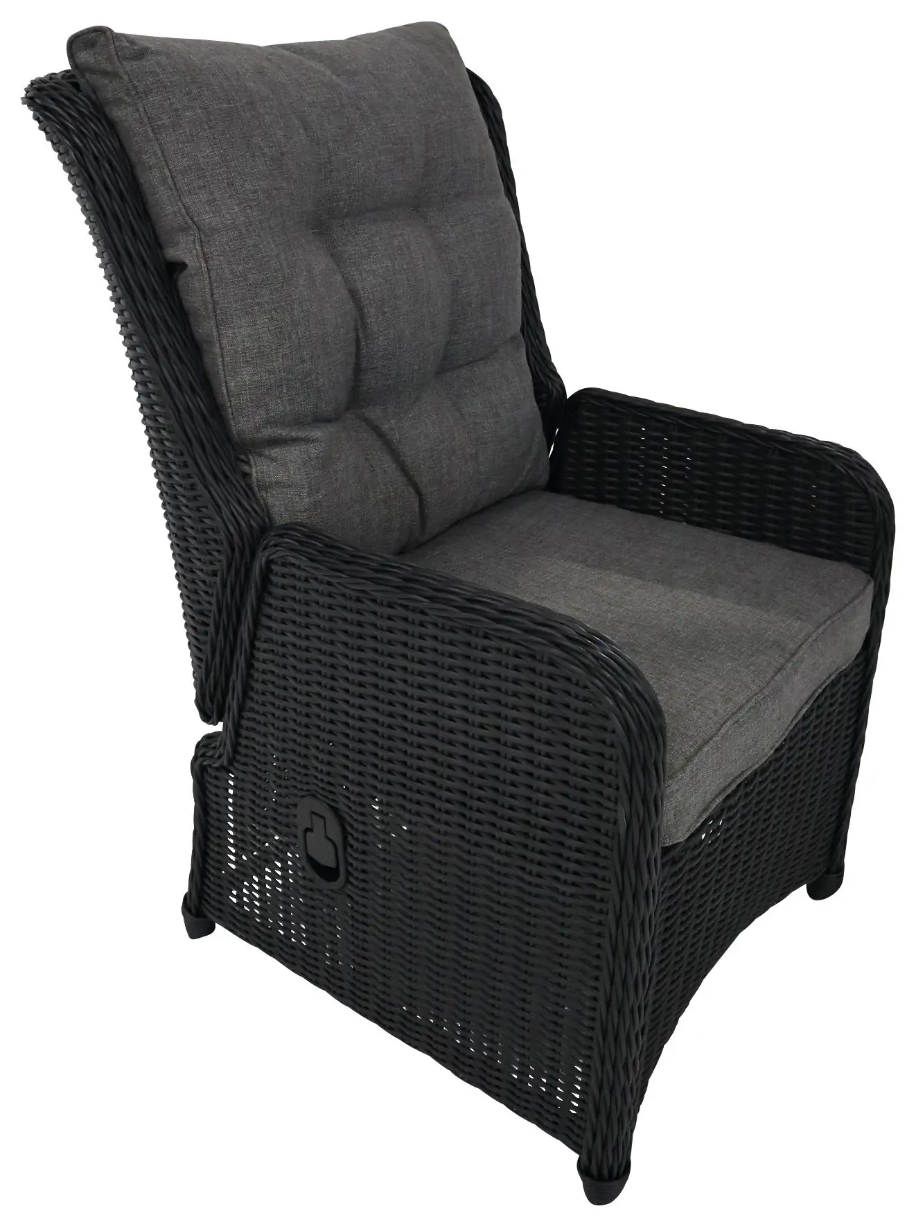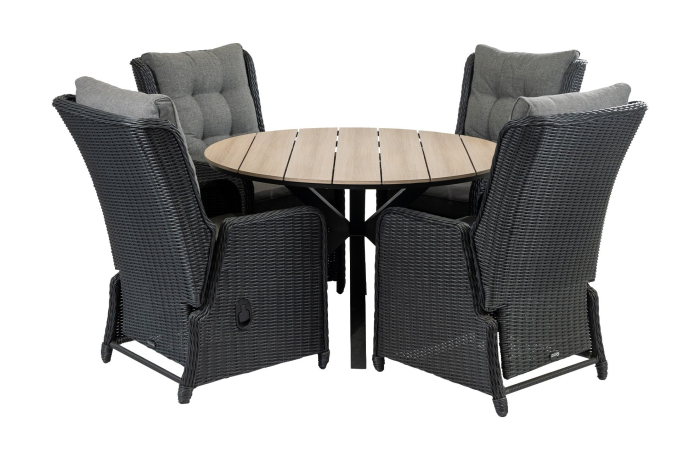 Rundes Gartenset 4 Personen | Dublin verstellbare Gartenstühle (Schwarz) | Limasol Polywood Gartentisch ø 120 cm (Wood)