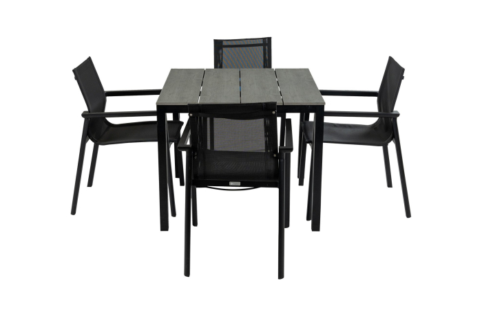 5-teiliges Garten-Set | 4 Delia-Gartenstühle | 90 x 90 cm Limasol-Gartentisch | Textil & Polywood | Schwarz & Grau