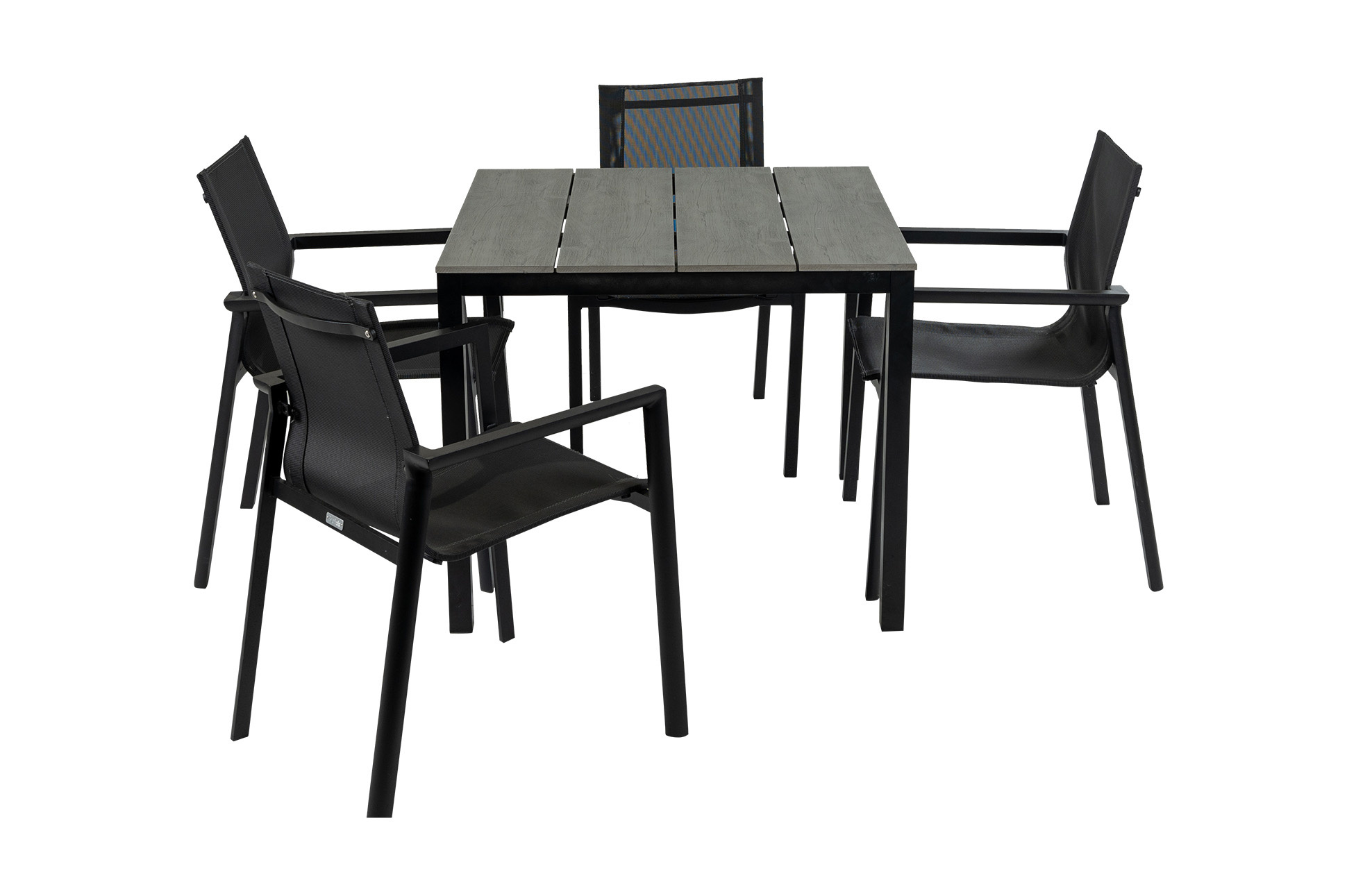5-teiliges Garten-Set | 4 Delia-Gartenstühle | 90 x 90 cm Limasol-Gartentisch | Textil & Polywood | Schwarz & Grau