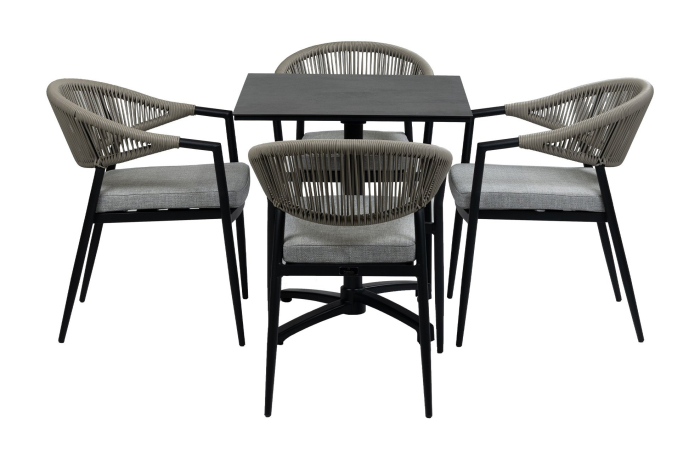 5-teiliges Garten-Set | 4 Gartenstühle Brügge (Schwarz) | Klappbarer Gartentisch Gent 70 x 70 cm (Schwarz)