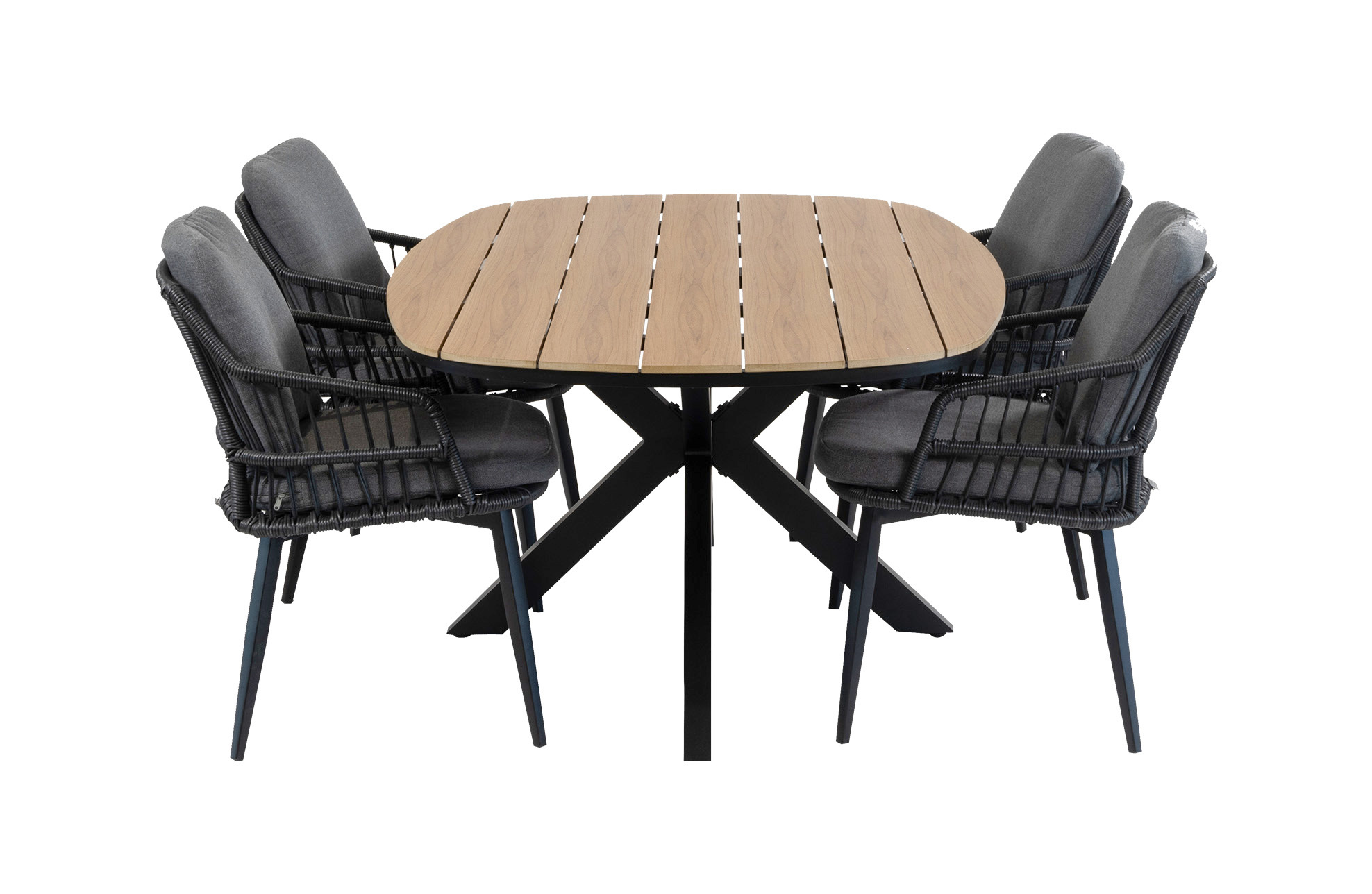 5-teiliges Garten-Set | 4 Isabel Gartenstühle | Cadiz Gartentisch 180 x 115 cm | Schwarz