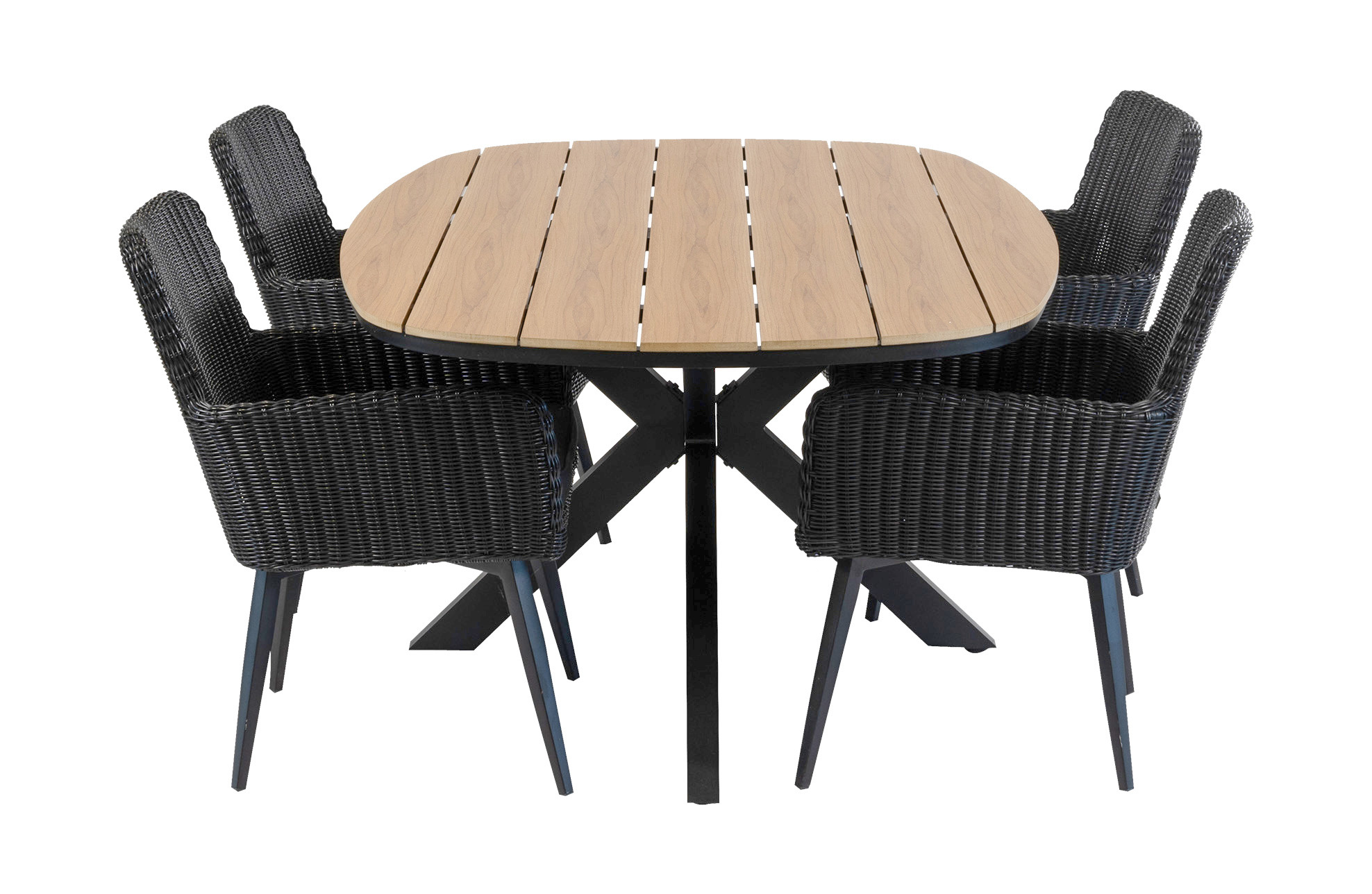 5-teiliges Garten-Set | 4 Pisa Gartenstühle | Cadiz Gartentisch 180 x 115 cm | Schwarz