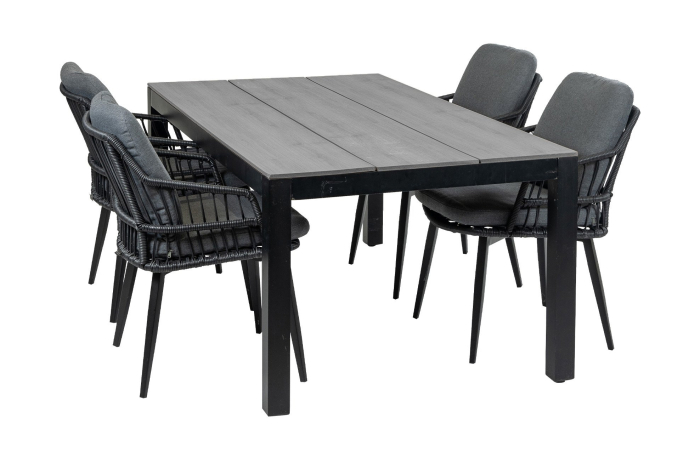 Gartenset für 4 Personen | Isabel Gartenstühle (Schwarz) | Limasol Polywood Gartentisch 180 x 100 cm (Grau)