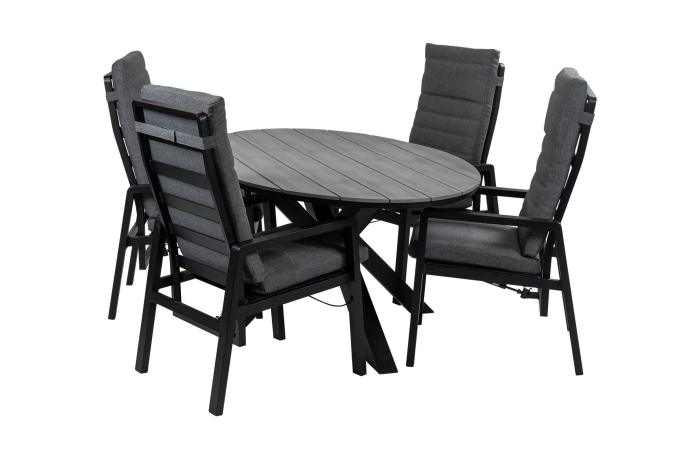 5-teiliges ovales Garten-Set | 4 Berlin Gartenstühle (Schwarz) | Gartentisch Limasol 180 cm (Grau)