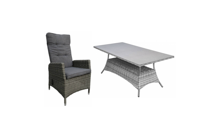 Der verstellbare Gartenstuhl Kos kombiniert mit dem Gartentisch aus Geflecht macht dieses schöne Gartenset komplett. Dieser Gartentisch ist aus halbrundem Weidengeflecht kombiniert mit rundem Weidengeflecht auf einem Aluminiumrahmen gefertigt und ist komplett zerlegbar. Der Tisch hat eine Keramikplatte, die eine Sicherheitsglasplatte mit einer Schicht aus gemischtem Stein auf der Oberseite ist. Die Platte ist leicht sauber zu halten und verleiht Ihrem Gartentisch ein besonders luxuriöses Aussehen. Der Tisch ist aus langlebigen Materialien gefertigt, die ihn wartungsfrei machen, aber auch für den ganzjährigen Gebrauch im Freien geeignet sind. Wir empfehlen, den Gartentisch abzudecken, wenn er in den Wintermonaten nicht benutzt wird.