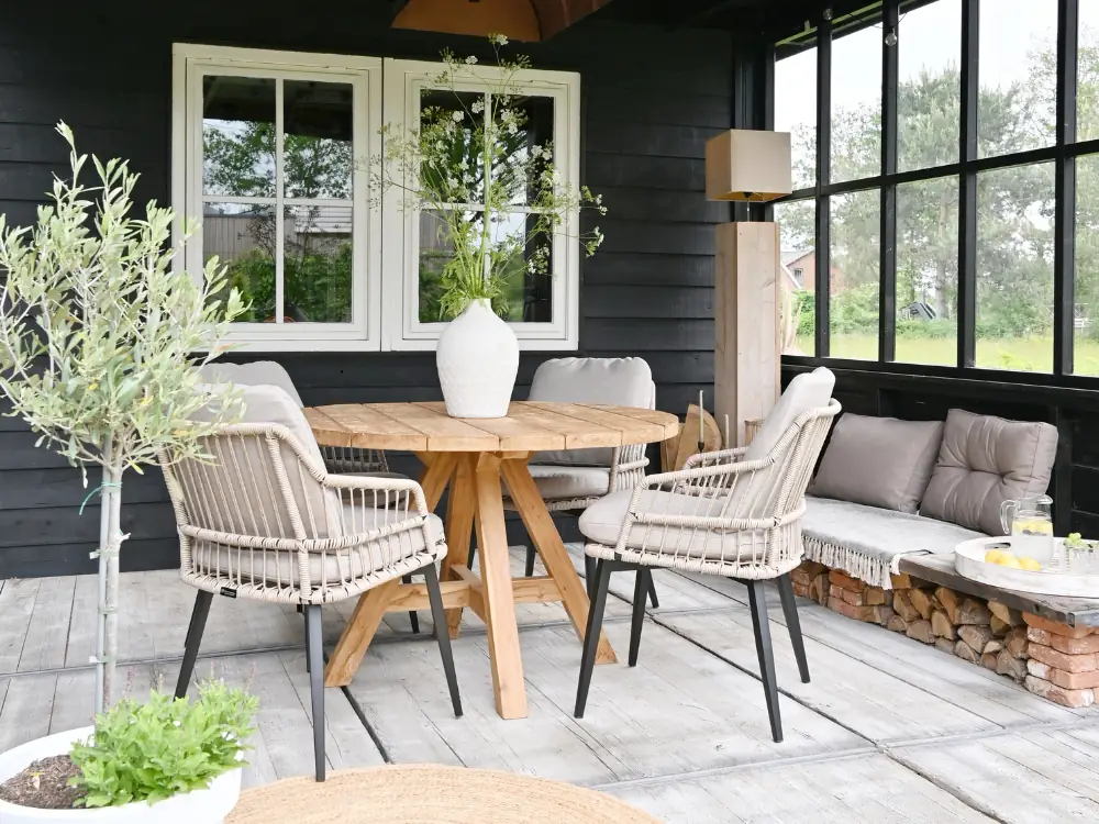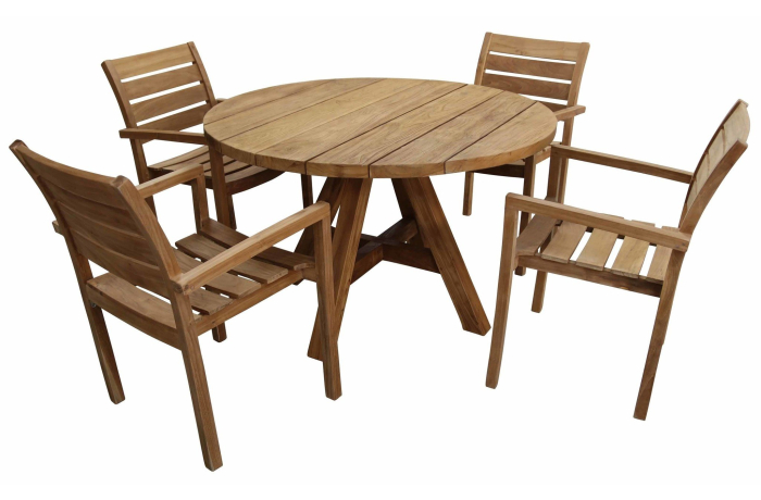 5-Teiliges rundes Garten-Set | 4 Bulu Gartenstühle | ⌀120cm Jakarta Gartentisch