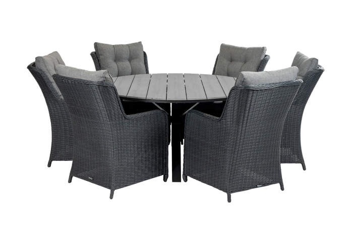 Rundes Gartenset 6 Personen | Dublin Gartenstühle (Schwarz) | Limasol Polywood Gartentisch ø 150 cm (Grau)
