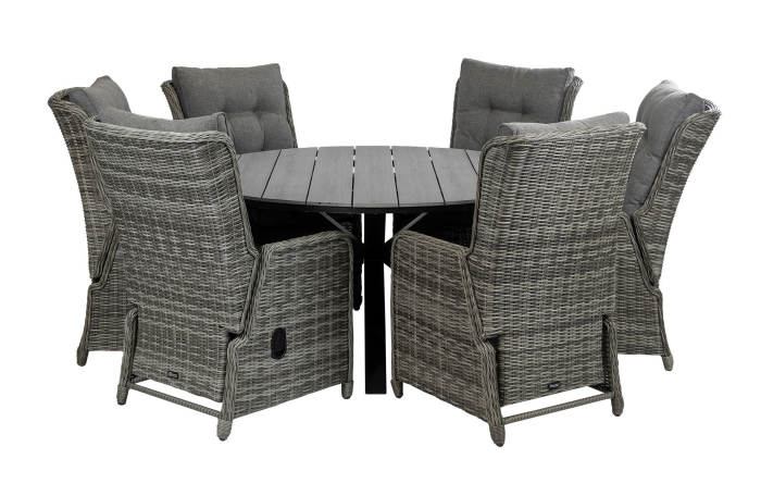 Rundes Gartenset 6 Personen | Dublin verstellbare Gartenstühle (Aschgrau) | Limasol Polywood Gartentisch ø 150 cm (Grau)