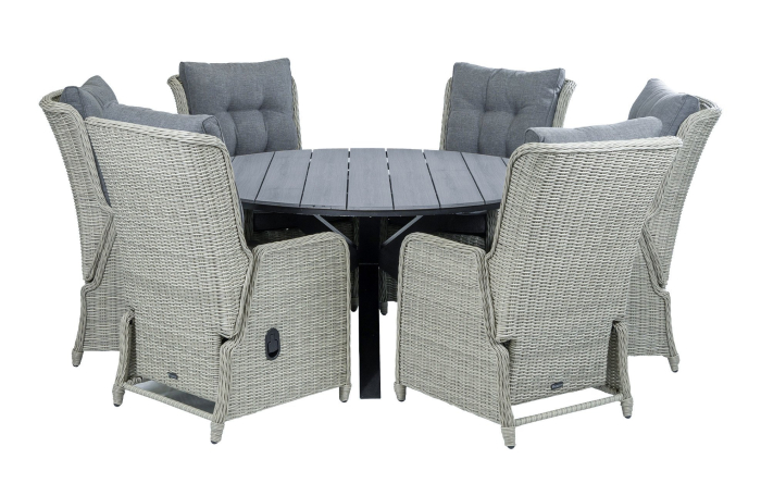 Rundes Gartenset 6 Personen | Dublin verstellbare Gartenstühle (Mystic Grau) | Limasol Polywood Gartentisch ø 150 cm (Grau)