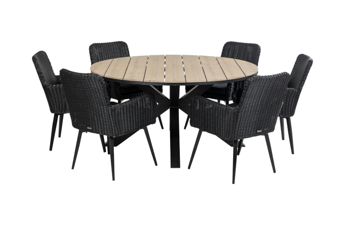7-teiliges Gartenset | 6 Pisa Gartenstühle | Limasol Gartentisch | ø 150 cm