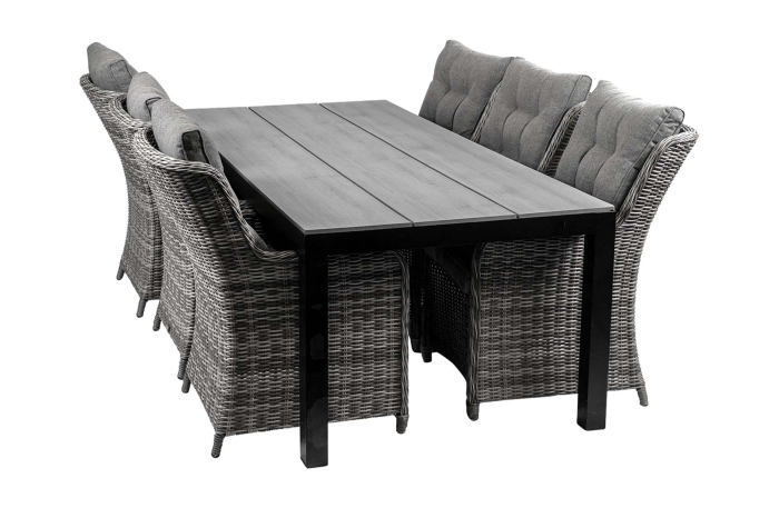 Gartenset für 6 Personen | Dublin Gartenstühle (Aschgrau) | Limasol Polywood Gartentisch 225 cm (Grau)