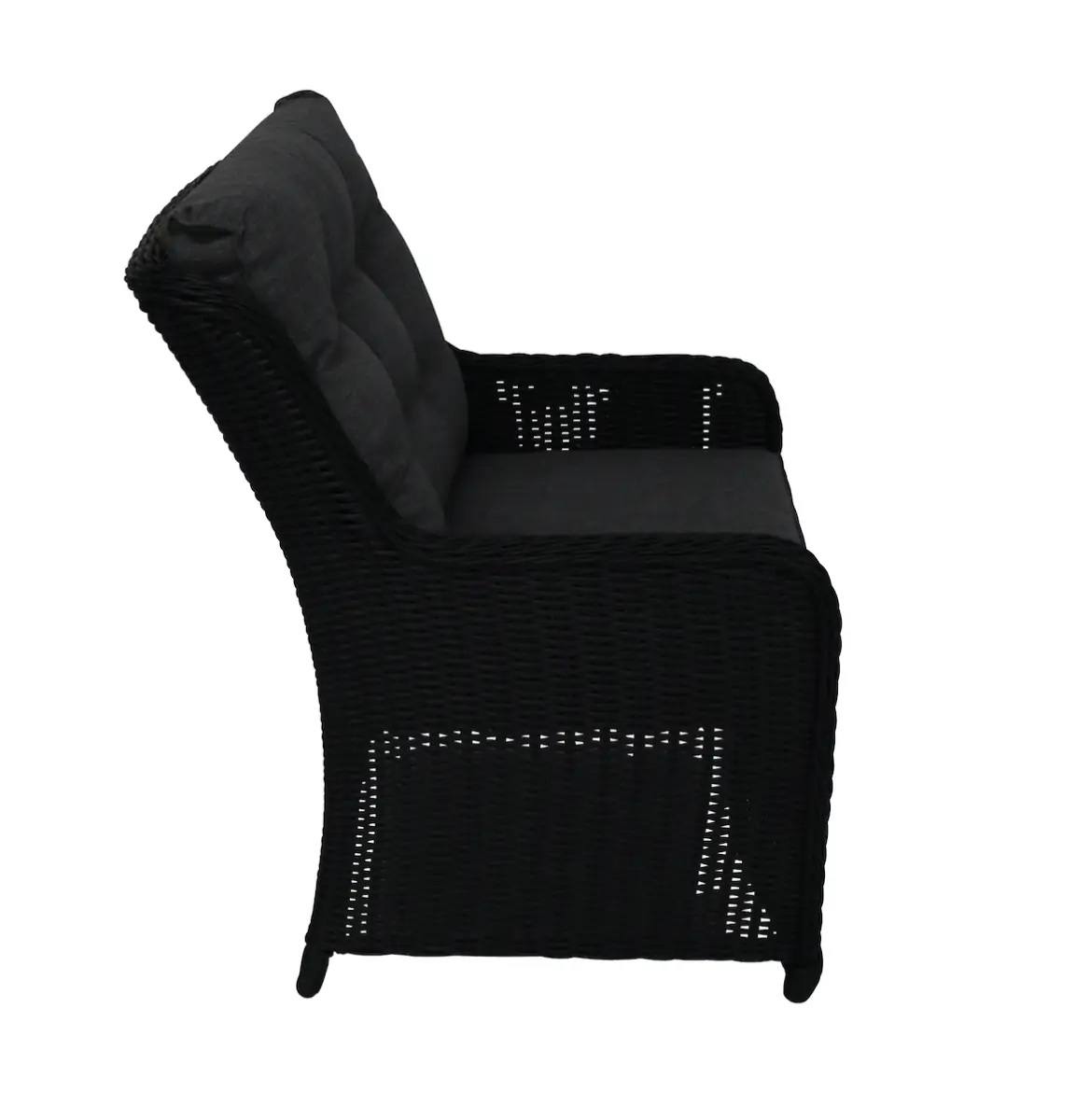Dieser bequeme Esszimmerstuhl ist aus Korbgeflecht auf einem Aluminiumrahmen gefertigt. Der Stuhl ist mit einem dicken Sitz- und Rückenkissen ausgestattet, dessen Bezug abnehmbar und somit waschbar ist. Die Materialien sind langlebig und sehr pflegeleicht und machen diese Stühle geeignet für den ganzjährigen Einsatz im Freien. Wir empfehlen jedoch, sie mit einer Schutzhülle zu versehen, wenn sie für längere Zeit nicht benutzt werden. Zudem ist es zu empfehlen, die Kissen bei Nichtgebrauch im Inneren oder in Kissentaschen aufzubewahren - die Taschen können Sie auch bei uns im Shop erhalten.