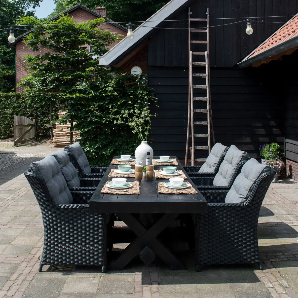 Gartenset für 6 Personen | Dublin Gartenstühle (Schwarz) | Limasol Polywood Gartentisch 225 cm (Grau)