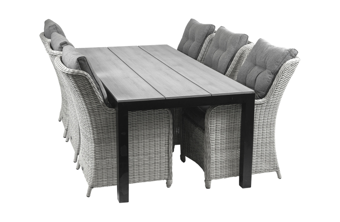 Gartenset für 6 Personen | Dublin Gartenstühle (Mystic Grau) | Limasol Polywood Gartentisch 225 cm (Grau)