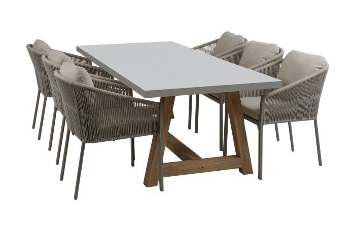 7-teiliges Garten-Set | 6 Elvira Gartenstühle | Rock Gartentisch 235 x 95 cm | Camel & Beton