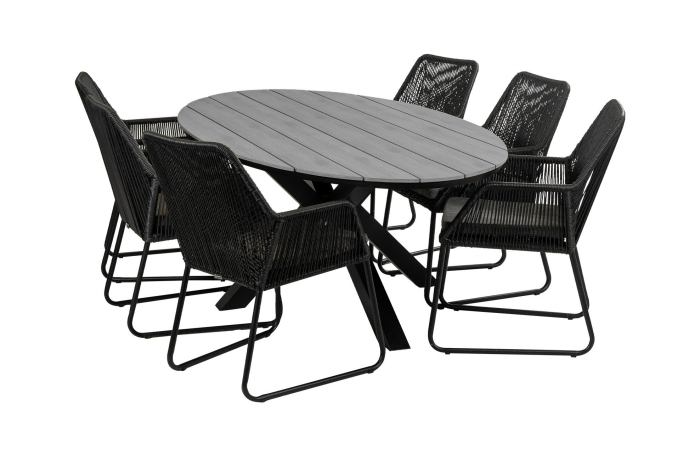 7-teiliges Gartenset | 6 Mona-Stühle | Limasol Gartentisch | 220 cm | Oval
