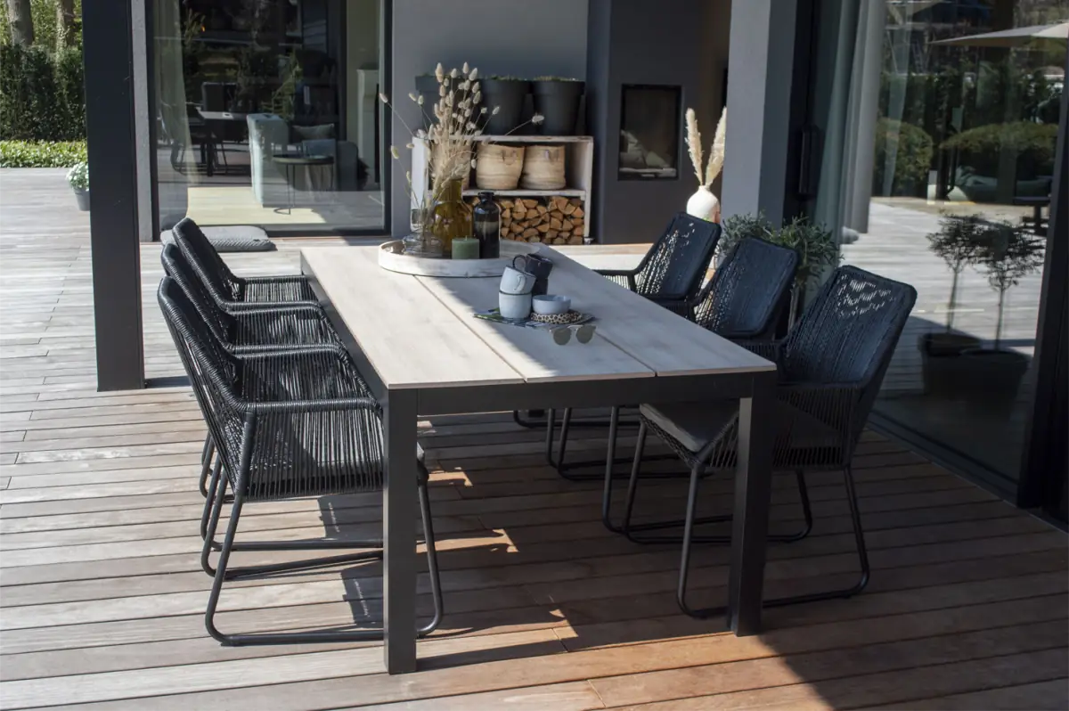 Der Gartentisch mit einer 220 cm Tischplatte ist mit stabilen Beinen ausgestattet und es können 6 - 8 Stühle damit kombiniert werden. Der Limasol wirkt durch seine Verarbeitung sehr robust. Dieser Tisch besteht aus Polywood, welches ein wunderbares Produkt ist, das seit Jahren für Gartenmöbel verwendet wird und sehr gut in jeden Außenbereich passt.