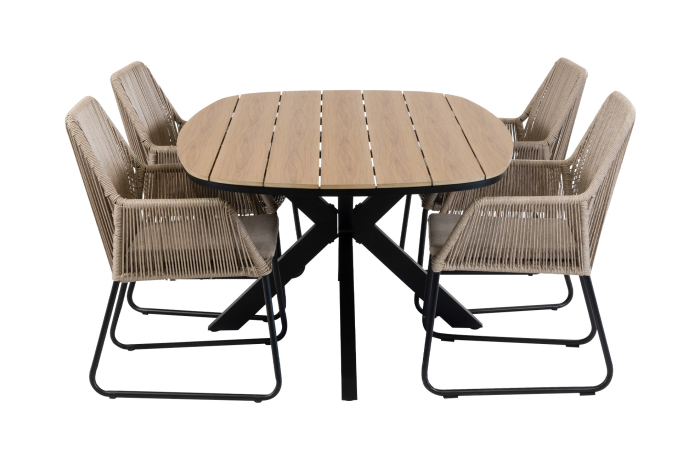 7-teiliges Garten-Set | 6 Gartenstühle Mona (Sand) | Gartentisch Cadiz 240 x 115 cm (Schwarz)