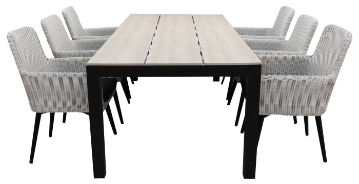 Gartenset für 6 Personen | Pisa Stühle (Weiß) | Limasol Polywood Gartentisch 225 cm (Wood)