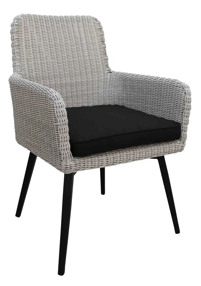 Der Pisa ist ein Gartenstuhl aus 5mm-Korbgeflecht mit Aluminiumbeinen in einer quadratischen Form. Aufgrund seines 5 cm dicken Kissens und der geräumigen Sitzfläche ist dieser Stuhl sehr gemütlich! Der Sitzkissenbezug ist abnehmbar und kalt waschbar.