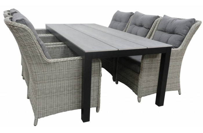 Gartenset für 6 Personen | Dublin Gartenstühle (Mystic Grau) | Limasol Polywood Gartentisch 225 cm (Grau)