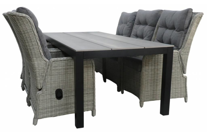 Gartenset für 6 Personen | Dublin verstellbare Gartenstühle (Mystic Grau) | Limasol Polywood Gartentisch 225 cm (Grau)