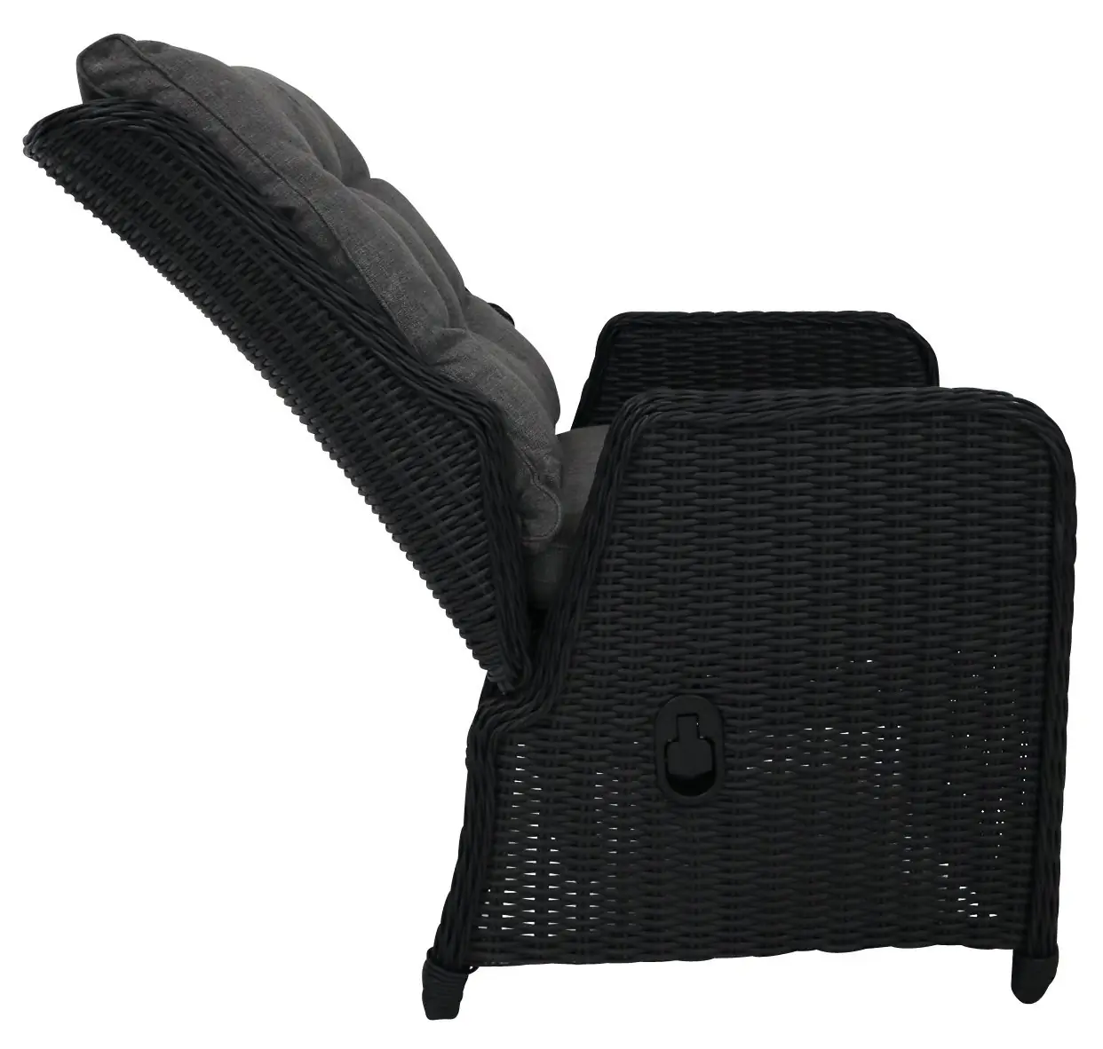 Dieser bequeme, verstellbare Esszimmerstuhl ist aus Korbgeflecht auf einem Aluminiumrahmen gefertigt. Der Stuhl ist mit einem dicken Sitz- und Rückenkissen ausgestattet, dessen Bezug abnehmbar und somit waschbar ist. Die Materialien sind langlebig und sehr pflegeleicht und machen diese Stühle geeignet für den ganzjährigen Einsatz im Freien. Wir empfehlen jedoch, sie mit einer Schutzhülle zu versehen, wenn sie für längere Zeit nicht benutzt werden. Zudem ist es zu empfehlen, die Kissen bei Nichtgebrauch im Inneren oder in Kissentaschen aufzubewahren - die Taschen können Sie auch bei uns im Shop erhalten.