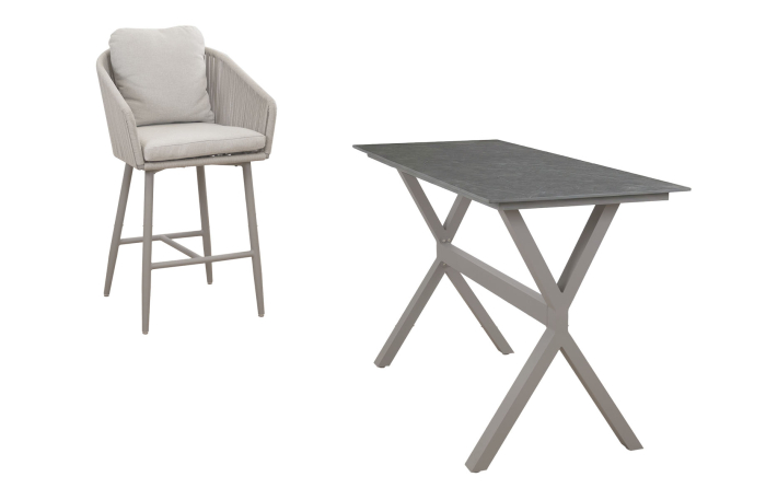 Dieses Set verbindet Höhe, Komfort und Pflegeleichtigkeit. Das warme Camel-Gestell, die Desert-Pearl-Tischplatte und das Sake-Rope schaffen gemeinsam eine moderne, aber dennoch einladende Ausstrahlung. Ideal für lange Sommerabende, gesellige Drinks oder informelle Dinner auf einer Terrasse, auf der Funktionalität und Design im Gleichgewicht stehen.
