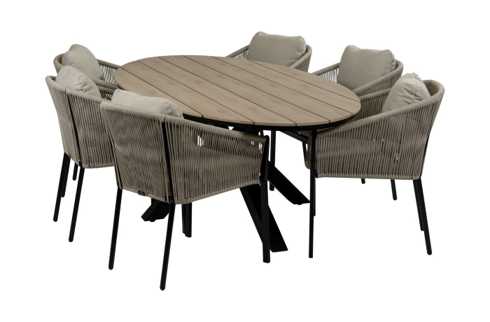 7-teiliges Garten-Set | 6 Elvira Gartenstühle (Schwarz) | Gartentisch Limasol oval 220 x 115 cm (Wood)