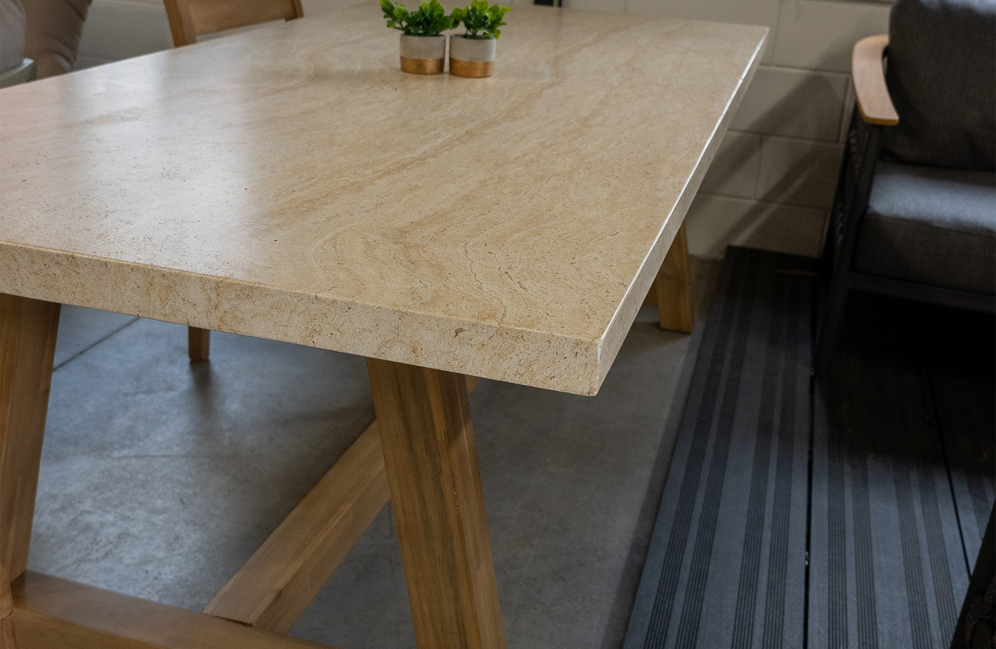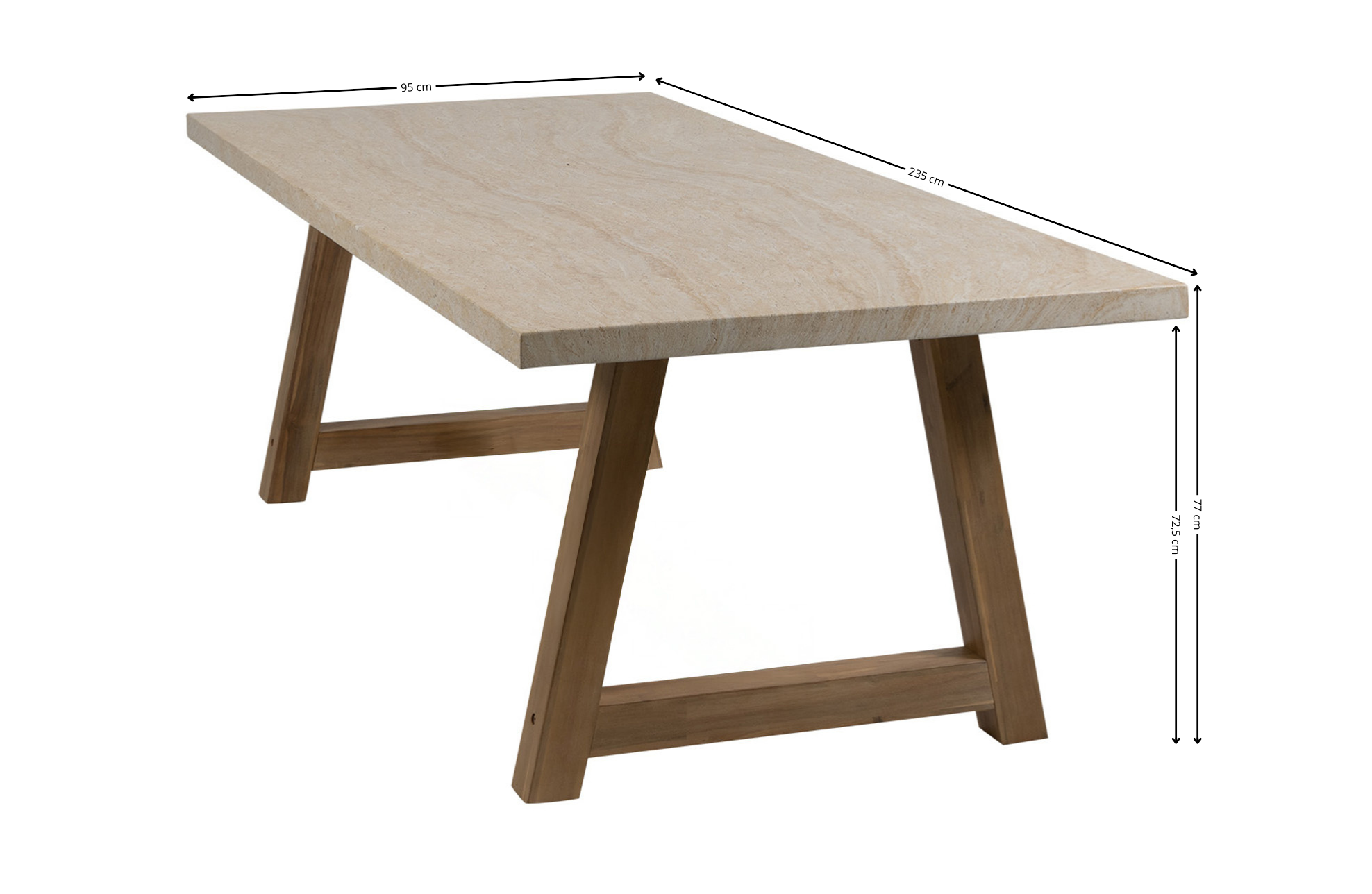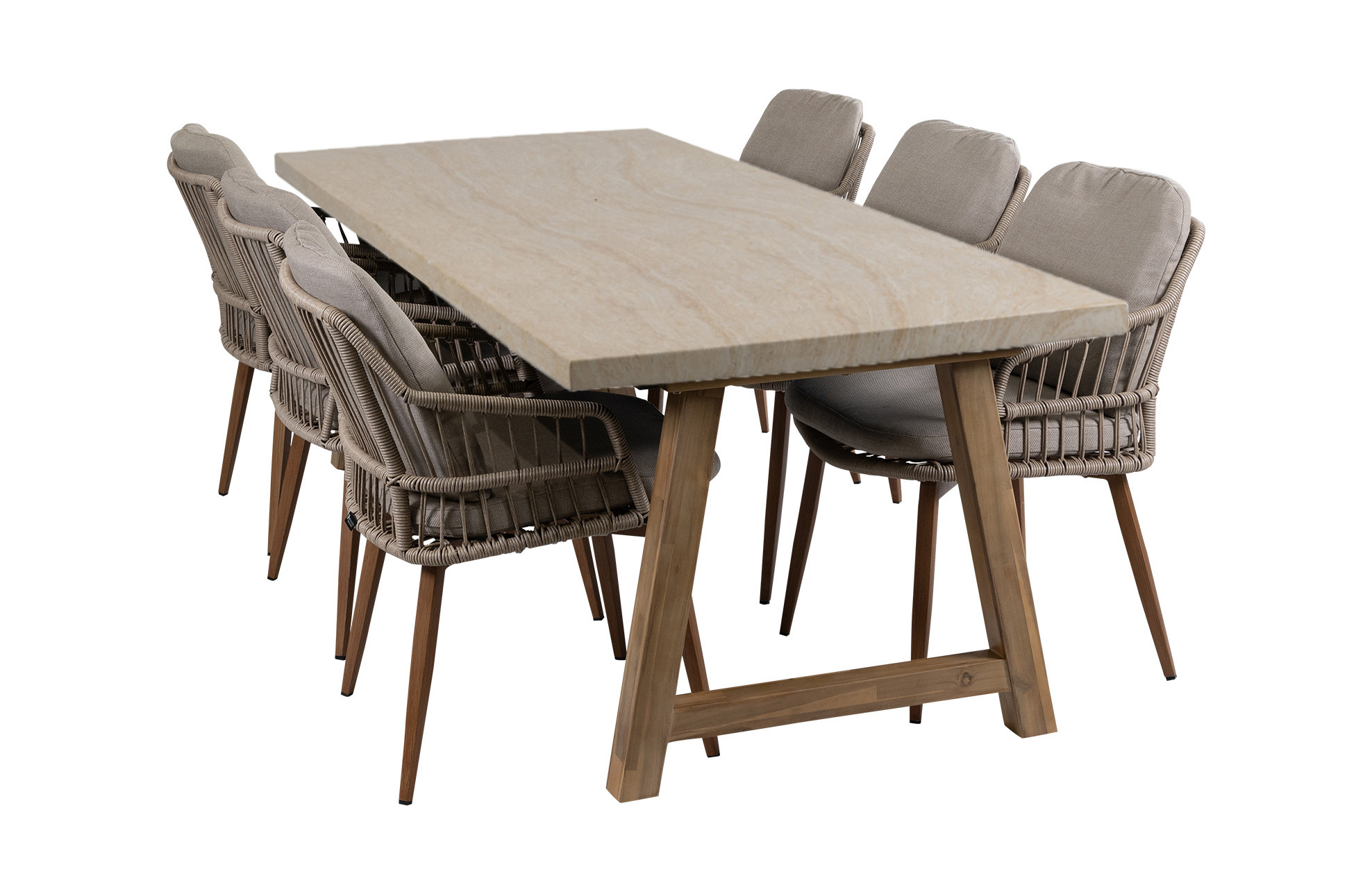 7-teiliges Garten-Set | 6 Isabel Gartenstühle | Rock Gartentisch (235 x 95 cm) | Sand & Travetine