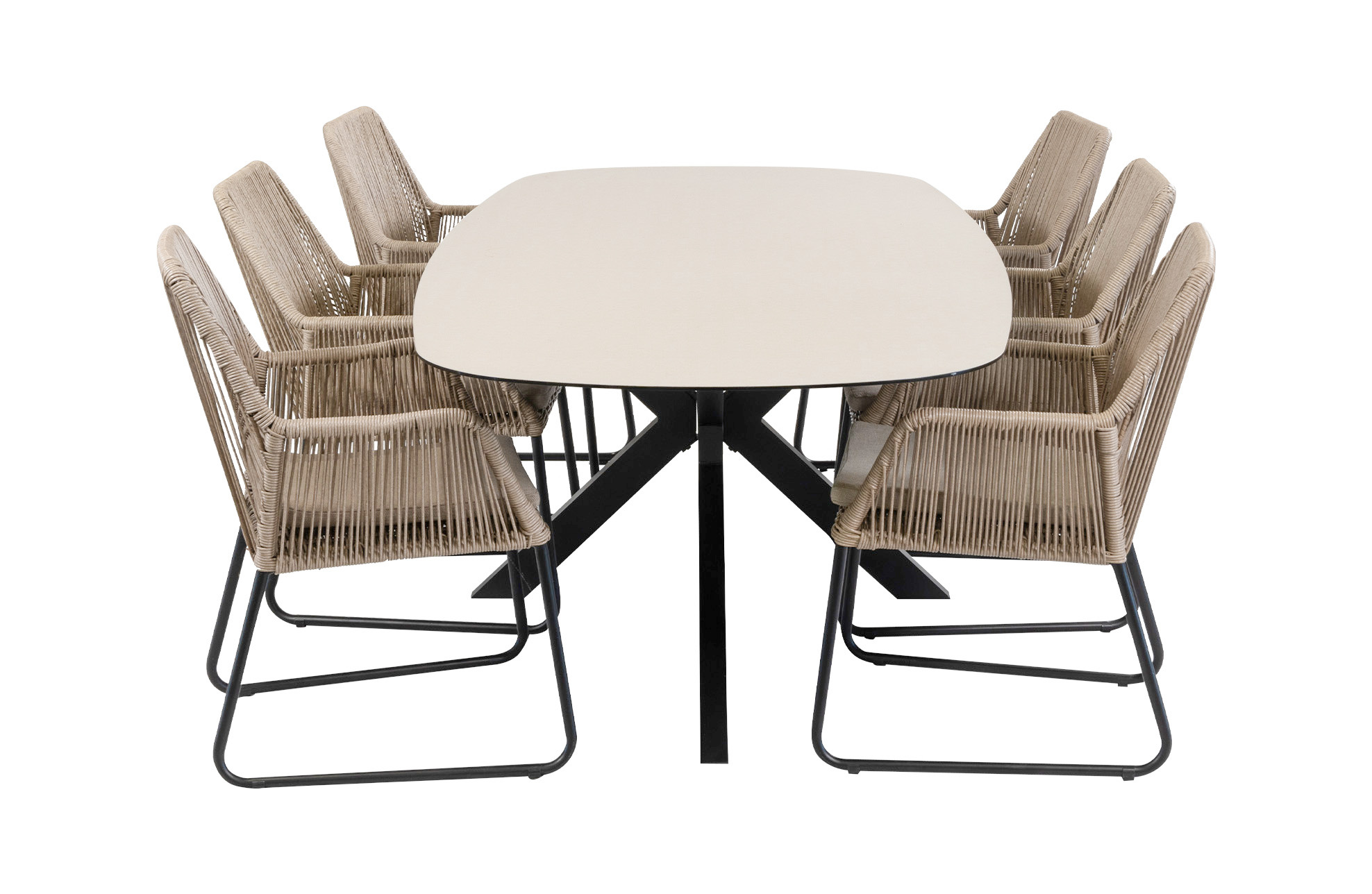 7-teiliges Garten-Set | 6 Mona Gartenstühle (Sand) | Malaga Gartentisch 240 x 115 cm (Schwarz)
