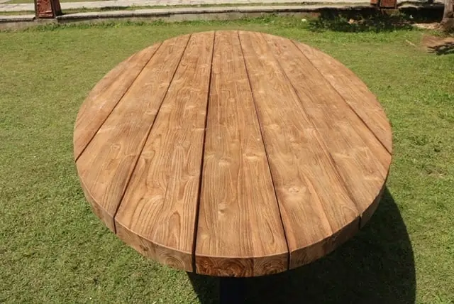 Teakholz ist ein Naturprodukt mit einer warmen Ausstrahlung. Äste und Unregelmäßigkeiten sind typisch für dieses Holz. Manchmal kann man auch Reparaturstücke sehen. Dies ist ein Teil des langlebigen, recycelten Teakholzes. Auch kleine Risse im Holz machen nichts aus: Sie entstehen durch natürliches Schrumpfen unter dem Einfluss von Licht, Temperaturunterschieden und Feuchtigkeit. Eine ausführliche Beratung zu diesem Gartentisch aus Holz finden Sie auf unserer Beratungsseite.