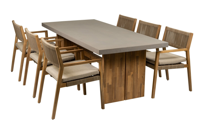 7-teiliges Gartenset | 6 Felline-Stühle | 210x100cm Rock Gartentisch | Betonoptik