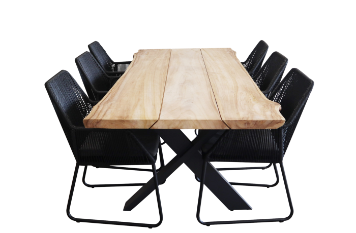Gartenset für 6 Personen | Mona Gartenstühle (Schwarz) | Gartentisch Pohon (Teakholz)