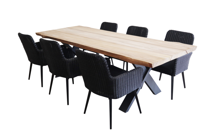 Gartenset für 6 Personen | Pisa Gartenstühle (Schwarz)| Pohon Teakholz Gartentisch