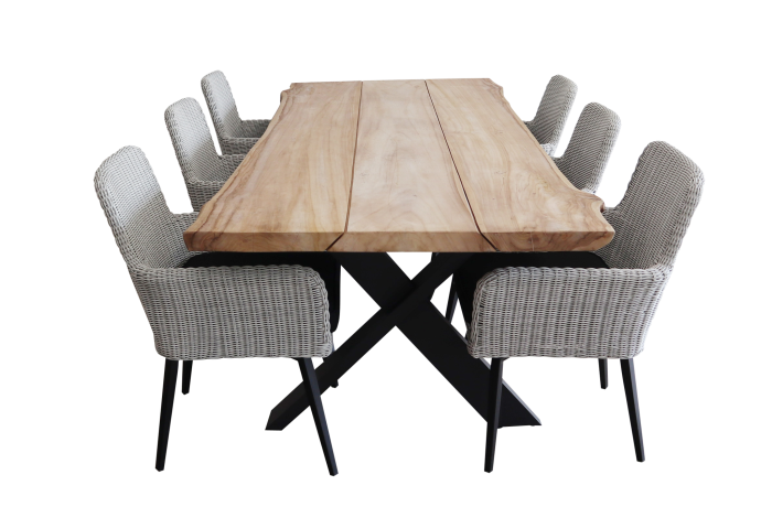 Gartenset für 6 Personen | Pisa Gartenstühle (Weiß)| Pohon Teakholz Gartentisch