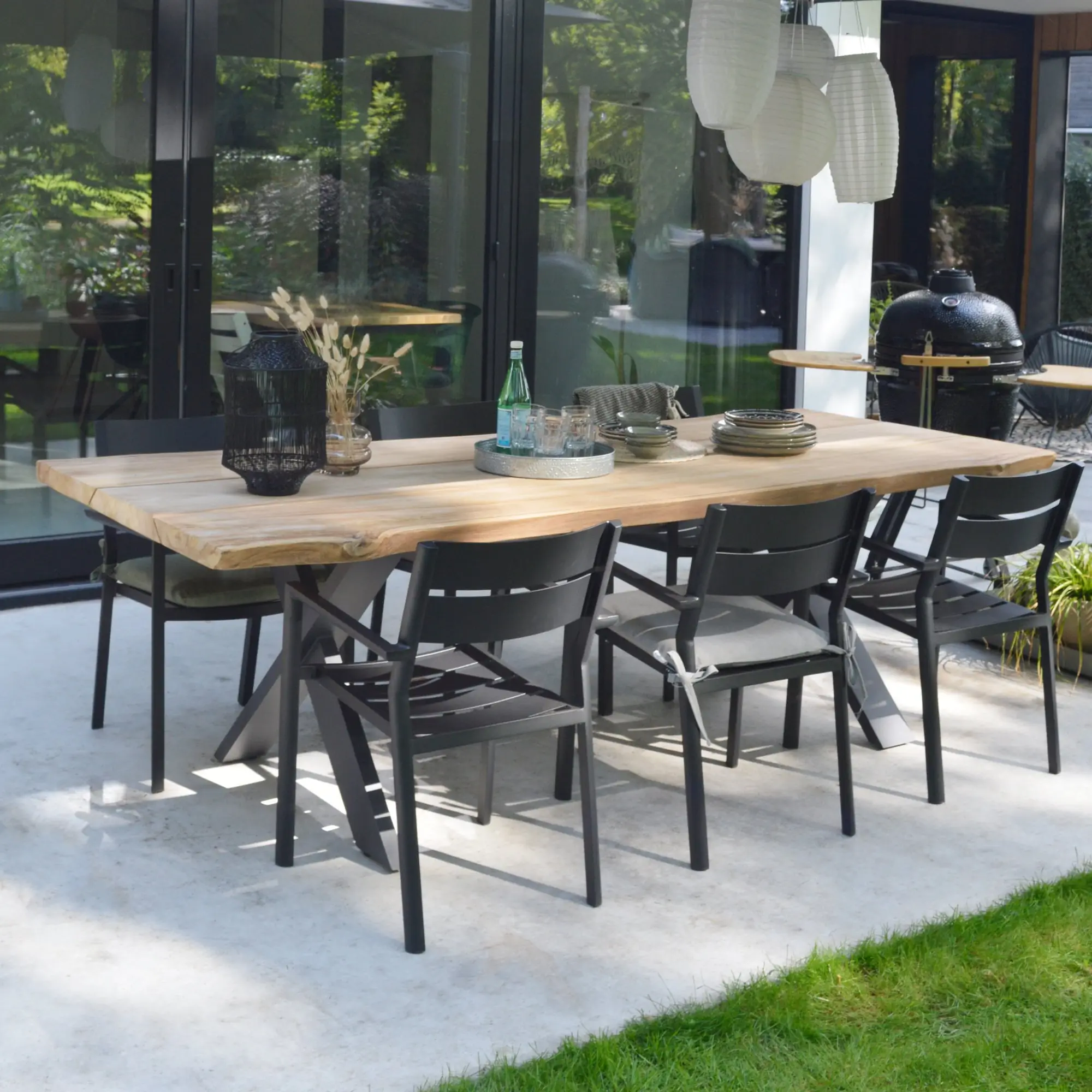 Stellen Sie sich mit dem Pohon ganz einfach Ihren eigenen Gartentisch nach Ihren Wünschen zusammen. Die Platte des Gartentisches ist aus wunderschönem Teakholz gefertigt, welches Ihrem Garten ein warmes Erscheinungsbild verleiht. Durch ein Aluminiumbein wird der Look ein wenig industrieller.