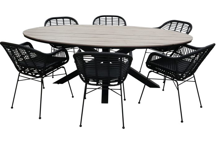 7-teiliges Gartenset | 6 Oslo Gartenstühle | Limasol Gartentisch | 220 cm | Oval
