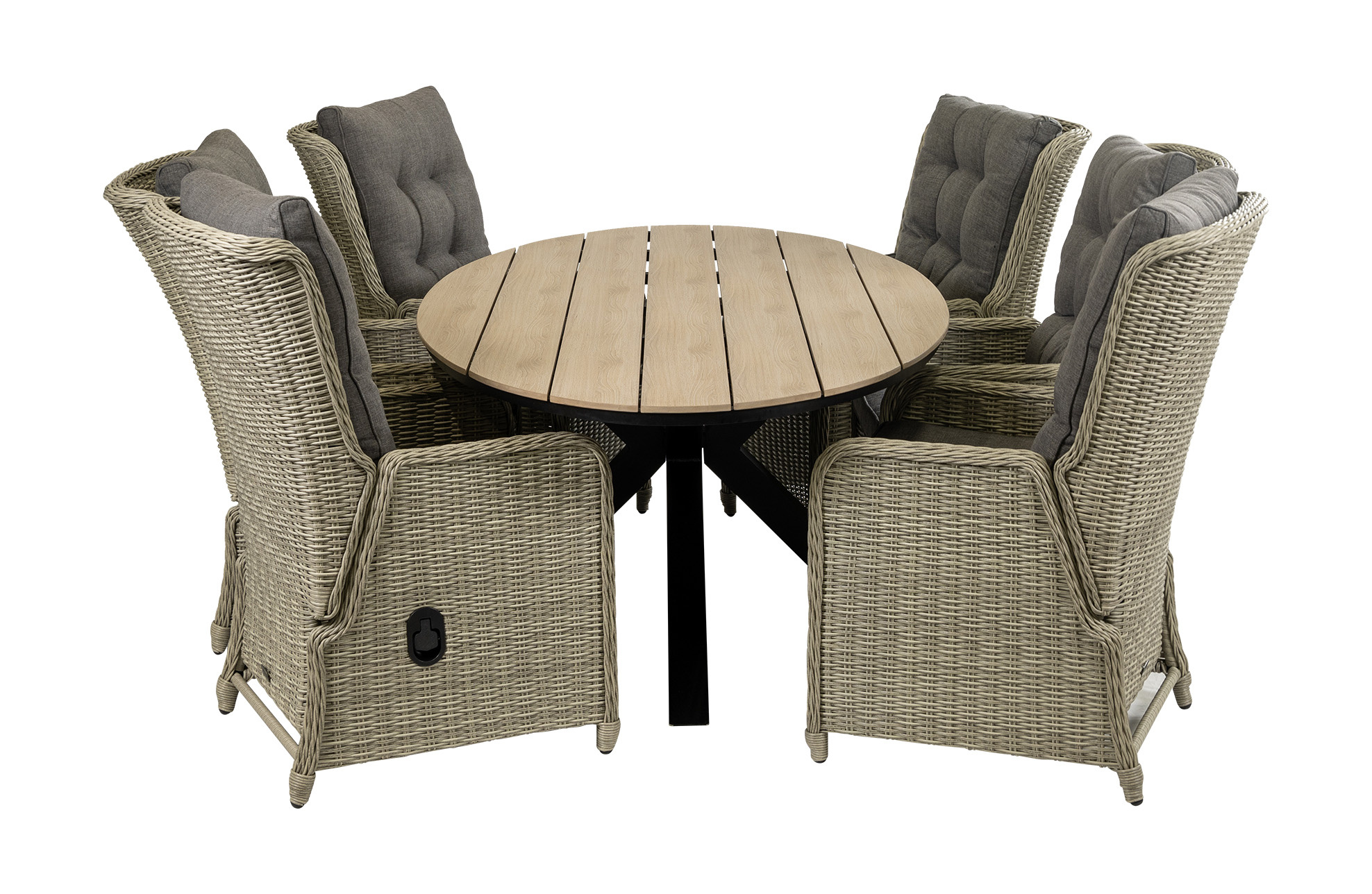 7-teiliges Gartenset | 6 verstellbare Dublin Gartenstühle | Limasol Gartentisch | 220 cm | Oval