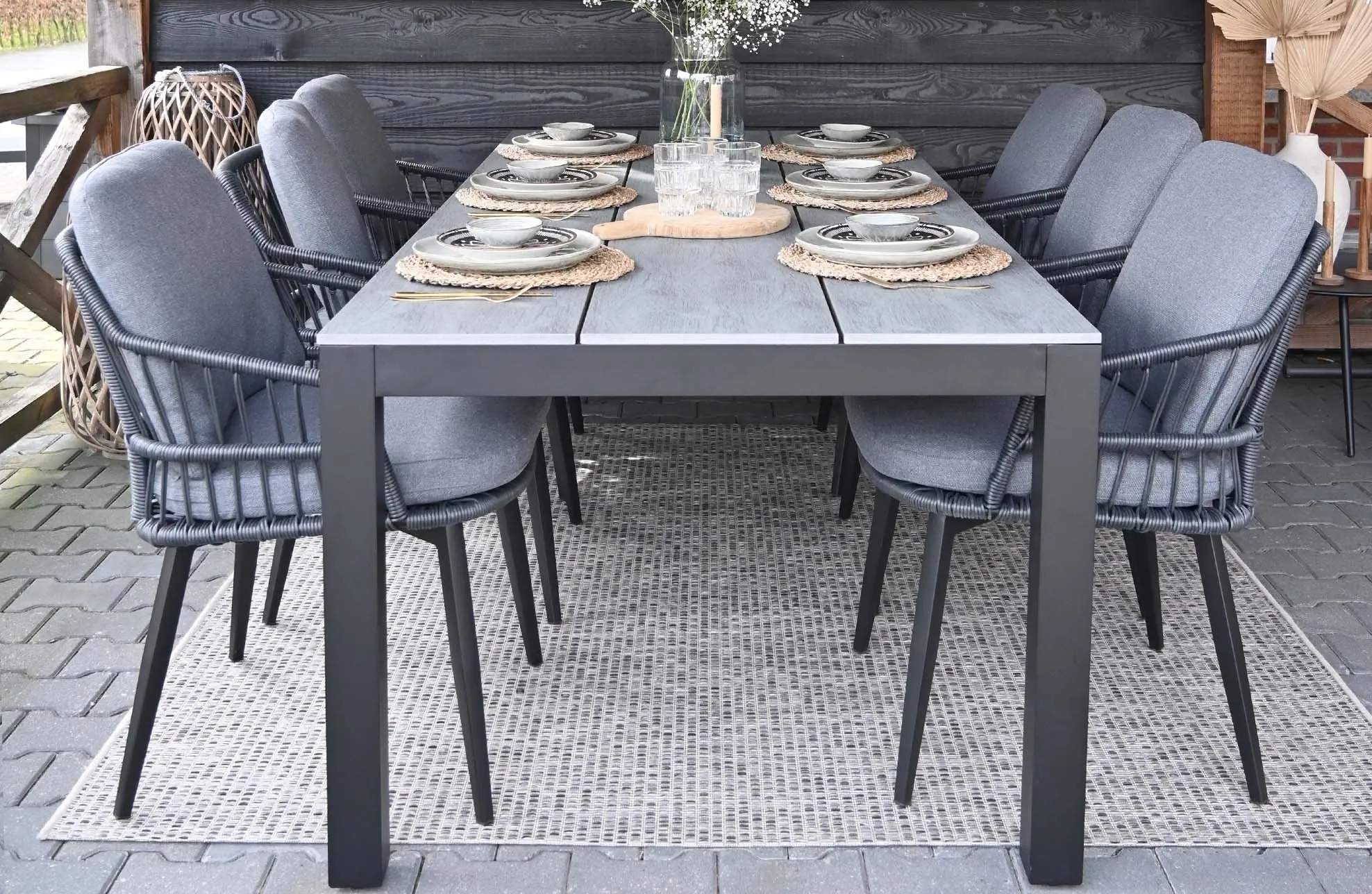 Gartenset für 6 Personen | Mona Gartenstühle (Schwarz) | Limasol Polywood Gartentisch 225 cm (Grau)